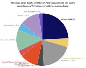 Das durchschnittliche, von einem Vermögensverwalter gemanagte Portfolio besteht zu 24% aus Aktienfonds. Auf Einzelaktien entfallen etwa 13%. Physische Goldbestände und ETCs machen rund 2% der Portfolios aus. In puncto regionaler Verteilung der Aktienanlagen in Vermögensverwaltungsportfolios gibt es eine klare Stoßrichtung: mit 40,3% steht Nordamerika klar an erster Stelle, gefolgt vom Euroland mit 29,9%.