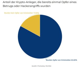 Wie aus einer neuen Infografik von Block-Builders.de hervorgeht, ist der Anteil der Krypto-Investoren, die bereits Opfer eines Betrugs oder Hackerangriffs wurden, alarmierend hoch. Ganze 83% geben an, bereits entsprechende Erfahrungen gemacht zu haben – ein klarer Hinweis darauf, dass Cyberkriminelle weiterhin leichtes Spiel haben.