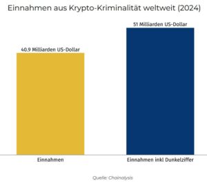 Allein in den USA beläuft sich der Schaden durch Krypto-Betrug im Jahr 2024 auf 9,3 Mrd. USD – ein massiver Anstieg gegenüber den 5,6 Mrd. USD im Vorjahr. Weltweit flossen nach aktuellen Erhebungen rund 40,9 Mrd. USD in die Kassen von Krypto-Kriminellen. Rechnet man die Dunkelziffer mit ein, könnten es sogar mehr als 51 Mrd. USD sein.