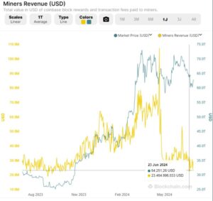 In den vergangenen Wochen und Monaten kam es zu einem massiven Rückgang bei den Einnahmen der BTC-Miner. Gegenüber der Spitze am 20. April 2024 schlägt der Rückgang mit bis zu 73% zu Buche, zahlreiche Unternehmen stehen unter hohem finanziellen Druck. Zuletzt war der Einbruch während der FTX-Krise so stark.