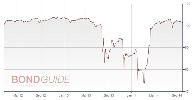 scholzchartErfreulich: Aufgrund der Restrukturierungsmaßnahmen einschließlich der Desinvestments und des TTC-Einstiegs konnten die Finanzschulden von 1,06 Mrd. EUR zum Jahresende 2013 auf 863,4 Mio. EUR (30.6.) reduziert werden. Wegen der schwierigen Lage der europäischen Stahlwirtschaft erwartet Scholz auch im zweiten Halbjahr ein verhaltenes Marktumfeld. Neben bereits umgesetzten und weiter geplanten Kostenreduktions- und Effizienzsteigerungsmaßnahmen rechnet Scholz im Gesamtjahr 2014 bei einer rückläufigen Tonnage- und Umsatzentwicklung dennoch mit einer Verbesserung von EBITDA und EBIT gegenüber den jeweiligen Vorjahreswerten. Scholz im BondGuide-Rückblick …