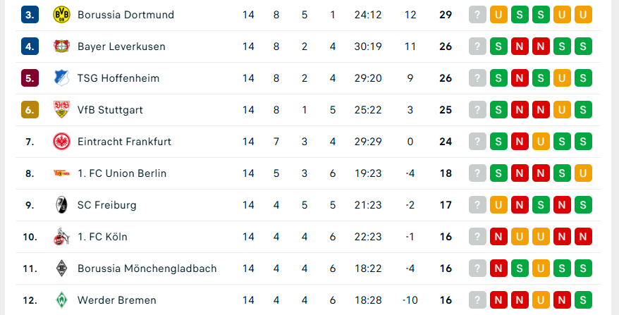 Werder Bremen musste noch Sonntagabend ran. Ein Heimspiel gegen den VfB Stuttgart. Der zeigte sich in Torlaune und schenkte den Hanseaten vier Buden ein. Der SVW ist nach vier sieglosen Spielen, davon drei Niederlagen, in einer Minikrise. Werder orientiert sich jetzt doch wieder nach unten – der zwischenzeitliche 8. Platz in Greifnähe zu internationalen Rängen war offenbar nur eine Lichtkerze. Nächstes Spiel auswärts in Augsburg.