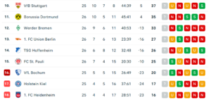RB Leipzig war für Dortmund sicherlich direkter Konkurrent um internationale Plätze. Vor diesem Spieltag. Eigentlich möchte man Champions League sagen – es ist unklar, ob man in Dortmund dieser Utopie noch hinterherhängt. Selbst von nur Conference League ist der BVB schon 5 ½ Punkte abgeschnitten. Die Dortmunder verloren 2:0, die dritte Niederlage in den letzten fünf Spielen in der Bundesliga, was einfach zu mau ist für internationalen Anspruch. Platz 11, und zwar mit 11 Niederlagen bei 10 Siegen.