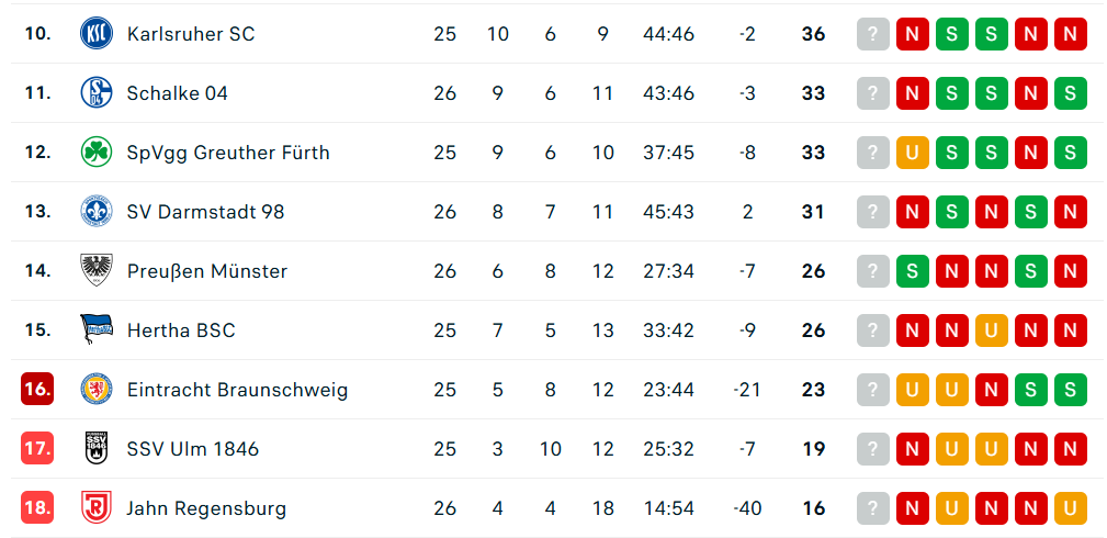 Die Hertha konnte sich am Sonntag noch gegen Eintracht Braunschweig etwas Luft freischießen. Die Braunschweiger stehen auf dem Relegationsplatz 16. Aber Achtung: Die Eintracht hat mehr Punkte aus den vergangenen Spielen geholt als Tabellennachbar Hertha BSC Berlin. Die nämlich auch nur noch auf Rang 15 herumkrebsen. Das Freischießen gelang: Die Hertha schoss die Eintracht mit 5:1 ab und verschaffte sich nach unten herum etwas Luft.