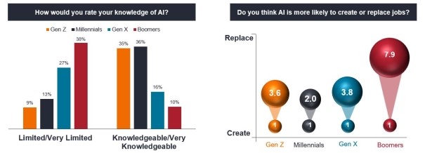 KI – Jüngere Generationen wissen mehr, machen sich weniger Sorgen; Quelle: Zusammenfassung der Umfrage über demografische Präferenzen, November 2023.
