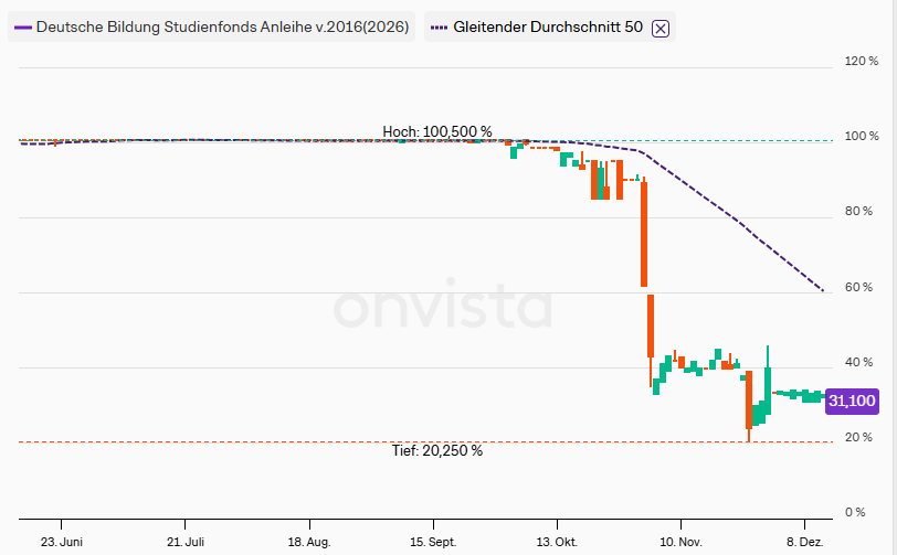 Hintergrund des angekündigten Restrukturierungsbedarfs sei, dass die Emittentin im 3. Quartal unerwartet relevante Abweichungen zwischen Soll- und Ist-Rückzahlungen der geförderten Studenten festgestellt habe. Die Überprüfung des für die entsprechenden Prognosen eingesetzten digitalen Tools ergab einen Modellierungsfehler in den zugrunde gelegten Annahmen und der Berechnungsmechanik hinsichtlich der Dauer der einkommensabhängigen Zahlungen.