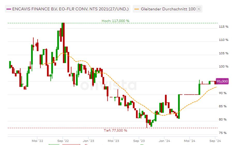 Die Encavis AG (Prime Standard; DE000 609500 3) ist ein im MDAX der Deutsche Börse AG notierter Produzent von Strom aus Erneuerbaren Energien. Als einer der führenden unabhängigen Stromerzeuger (IPP) erwirbt und betreibt ENCAVIS (Onshore-)Wind- und Solarparks in zwölf Ländern Europas. Die Anlagen zur nachhaltigen Energieerzeugung erwirtschaften stabile Erträge durch garantierte Einspeisevergütungen (FIT) oder langfristige Stromabnahmeverträge (PPA). Die Gesamterzeugungskapazität des Encavis-Konzerns beträgt aktuell rund 3,6 Gigawatt (GW), davon rund 2,2 GW durch die Encavis AG. Zudem sind aktuell im Konzern mehr als 1,2 GW an Kapazitäten im Bau, davon gut 900 MW im Eigenbestand.