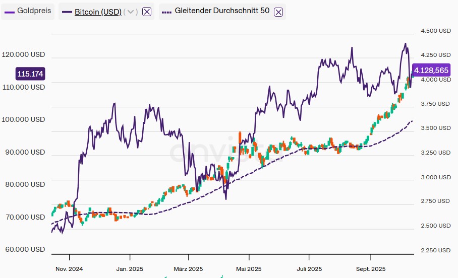 Der Goldpreis scheint aktuell nur eine Richtung zu kennen – aufwärts. Mehr als 30 neue Höchststände verzeichnete das Edelmetall in diesem Jahr bereits. Zuletzt auf über 4.000 USD je Feinunze. Damit unterstreicht Gold seine anhaltende Attraktivität als sicherer Hafen inmitten wirtschaftlicher Unsicherheiten und politischer Turbulenzen. Der jüngste Aufschwung folgt auf neue Signale der US-Notenbank Federal Reserve. Deren Vorsitzender Jerome Powell sieht eine ‚verschiebende Risikobilanz‘, die eine geldpolitische Lockerung notwendig machte.