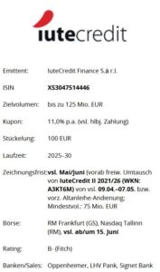 Die Veröffentlichung der Ergebnisse – immerhin wurde ein Mindestvolumen aus Umtausch und Andienung von 75 Mio. EUR aus Voraussetzung für die Umsetzung der Neuemission ausgelobt – erfolge nunmehr am oder um den 9. Mai 2025.