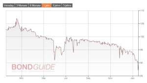 Bei beiden Anleihen wurde eine deutliche Ausweitung der Wertpapierumsätze an allen Börsenplätzen festgestellt. Mit den Kursen vom 15.01. um 16:00 Uhr liegen die Kurse der beiden Wertpapiere noch deutlich über dem Kaufangebot in Höhe von 80%.
