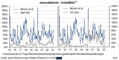 Leider führt er keinen schlüssigen Beweis und verliert sich zuweilen im Anekdotischen. Der Einbruch des Bitcoin-Kurses um nicht weniger als 75% nach dem Allzeithoch von November 2021 hat die Finanzmärkte und die Realwirtschaft der Welt jedenfalls nicht erkennbar beeindruckt.