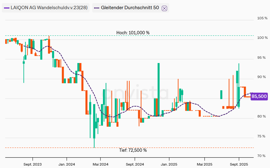 Das EBITDA 2026(e) werde in einer Bandbreite von 4,5 bis 7,5 Mio. EUR prognostiziert. Dabei sind Performance-Fees des Produktspektrums des LAIQON-Konzerns wie im Jahr 2024 und in gleicher Höhe auch für das Jahr 2025(e) in der Prognose des EBITDA berücksichtigt.