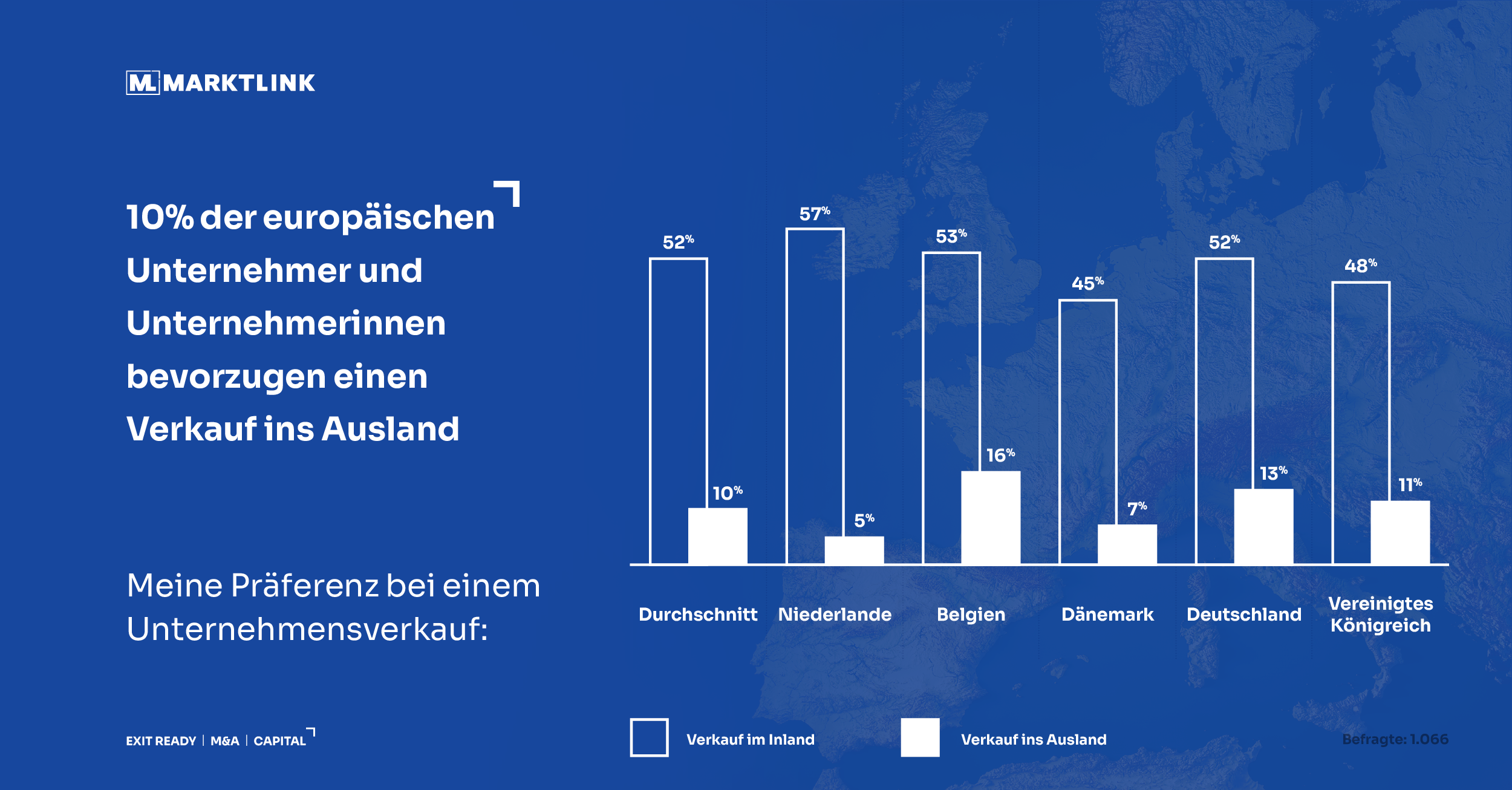 Der aktuelle Marktlink Monitor beleuchtet den Willen deutscher Unternehmer, ihre Organisation an ausländische Käufer zu verkaufen sowie das eigene Wachstum durch eine Expansion ins Ausland anzukurbeln. Obwohl sich die Mehrzahl der Unternehmer bewusst sind, dass ihr Unternehmen für ausländische Käufer attraktiver werden, ist ihre Präferenz für einen Verkauf innerhalb Deutschlands weiterhin vorherrschend. Alle Ergebnisse des neuen Monitors finden Sie hier: Marktlink Monitor – International Expansion