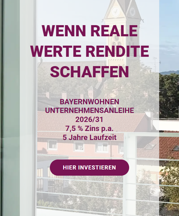 Die Anleihe ergänze die Bankfinanzierungen strategisch und ermögliche es, Projekte schneller umzusetzen sowie bestehende Finanzierungsmittel für neue Vorhaben freizusetzen. Anleger investieren nicht in einen unbestimmten Pool, sondern in konkrete Wohnprojekte in wirtschaftlich starken Mikrolagen mit strukturellem Nachfrageüberhang, meint jedenfalls Andreas Entreß, Gründer und Geschäftsführer BAYERNWOHNEN.