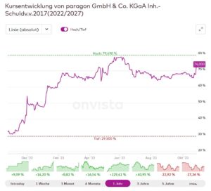 Auch die paragon GmbH & Co. KGaA (ISIN: DE000 555869 6) setzt zum Anleiherückkaufprogramm an: So hat der Automobilelektroniker im Hinblick auf seine Verpflichtungen aus den Anleihebedingungen zur Teilrückführung der 6,76%-Unternehmensanleihe 2017/27 (ISIN: DE000 A2GSB8 6) über 50 Mio. EUR ein Anleiherückkaufprogramm beschlossen.