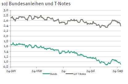 Erneut hinter den Schätzungen zurückgebliebene US-Konjunkturdaten aus dem verarbeitenden Gewerbe sorgten gepaart mit den üblich schlechten Nachrichten aus dem Euroraum für einen „risk off“-Modus bei den Investoren. Im weiteren Tagesverlauf gingen die Renditen für Staatsanleihen dies- und jenseits des Atlantiks kräftig zurück. Im Euroraum dürfte es eine Rolle spielen, dass der eine oder andere Investor auf ein „echtes“ QE-Programm der EZB hofft, denn gerade die Renditerückgänge in der Peripherie fielen deutlich aus. Doch damit wird sich die EZB Zeit lassen, denn das ist ihr aller letztes Mittel, um noch mehr Liquidität in den Markt zu pumpen. Davon abgesehen dürfte sich gegen ein QE-Programm in Form eines Ankaufs von Staatsanleihen nicht nur aus Deutschland massiver Widerstand regen. Mario Draghi wird auf der Pressekonferenz jedoch erneut andeuten, dass die EZB auf dieses Mittel zurückgreifen würde, wenn sie es für notwendig erachten sollte.