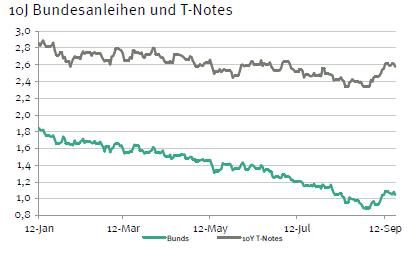 Auf dem erhöhten Renditenniveau gepaart mit weniger überzeugenden Konjunkturdaten griffen einige Anleger am US-Staatsanleihemarkt zu. Aufgrund der schwächeren Tendenz an den asiatischen Aktienmärkten setzte sich diese Bewegung heute Morgen fort. Viel Neues gibt es jedoch nicht.