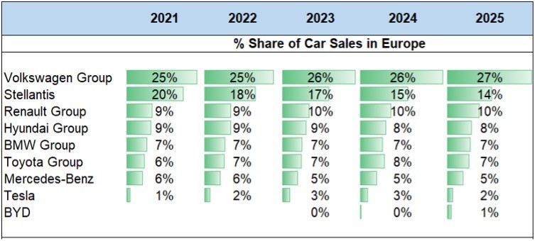 Während Tesla angibt, Rekordauslieferungen im asiatisch-pazifischen Raum (APAC) erzielt zu haben, ist Europa wahrscheinlich ein wesentlicher Faktor für den Absatzverlust: Der chinesische Automobilhersteller BYD hat massive Fortschritte bei der Marktdurchdringung gemacht, während Volkswagen seine Verkäufe auf dem Kontinent weiter festigt. Fast jedes zehnte von Volkswagen weltweit produzierte Fahrzeug ist ein batterieelektrisches Fahrzeug (BEV), und etwa 76% der BEV-Verkäufe von VW entfielen auf Europa – einen Markt, der weiterhin ein resistentes Wachstum zeigt.