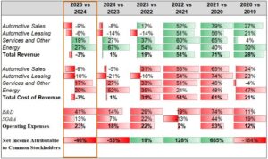 Die anhaltende Abhängigkeit des Unternehmens vom Automobilabsatz bleibt ein Klumpenrisiko: Trotz der Fortschritte in den Bereichen Services und Energy bleiben starke Schwankungen bei den Fahrzeugverkäufen der deutlichste Gradmesser für den Gewinn der Aktionäre.